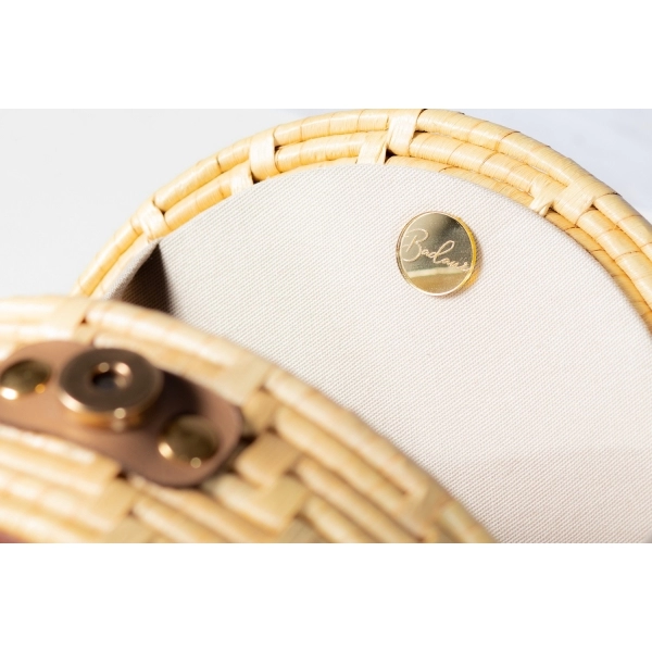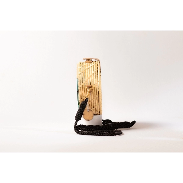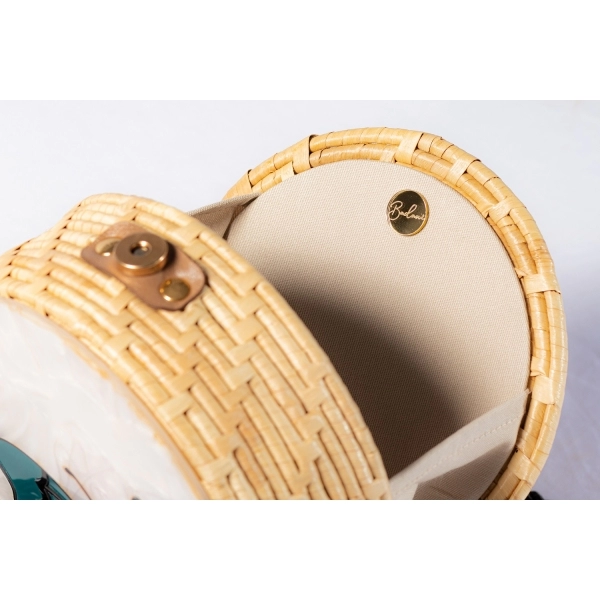 Informações do produto: Bolsa de Palha Borboleta - Redonda P - Madrepérola Claro com Verde