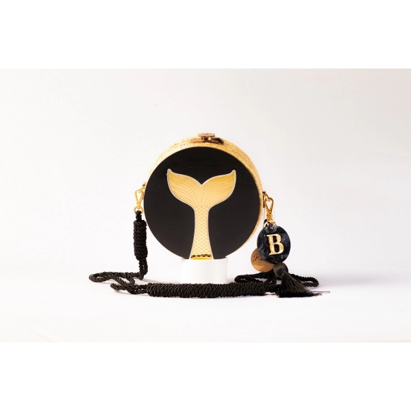 Informações do produto: Bolsa de Palha Rabo de Sereia - Redonda P - Preto com Madrepérola Claro
