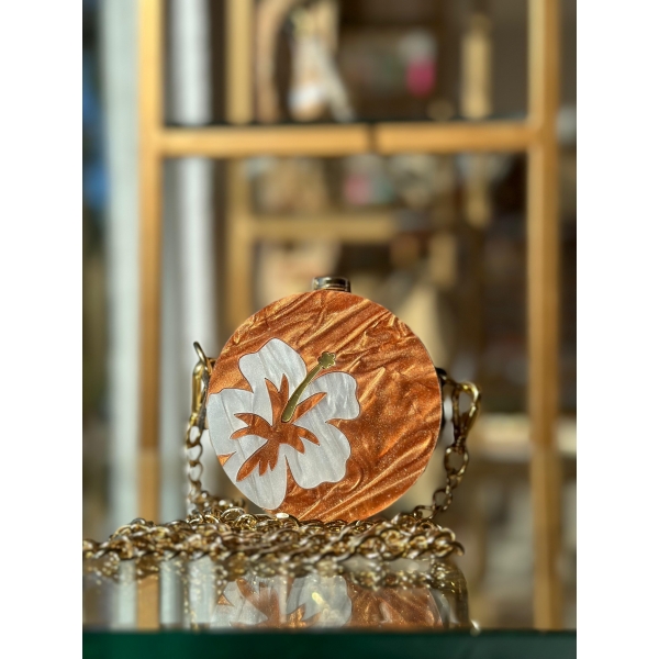 Informações do produto: Micro bag - Flor - Madrepérola marrom com claro